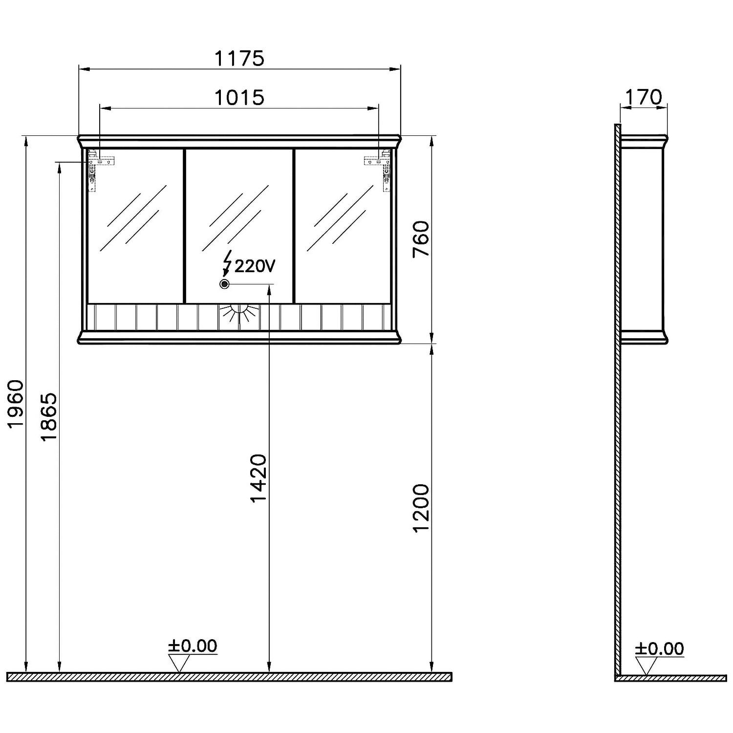 VitrA Valarte LED Spiegelschrank 118 cm mit 3 Türen