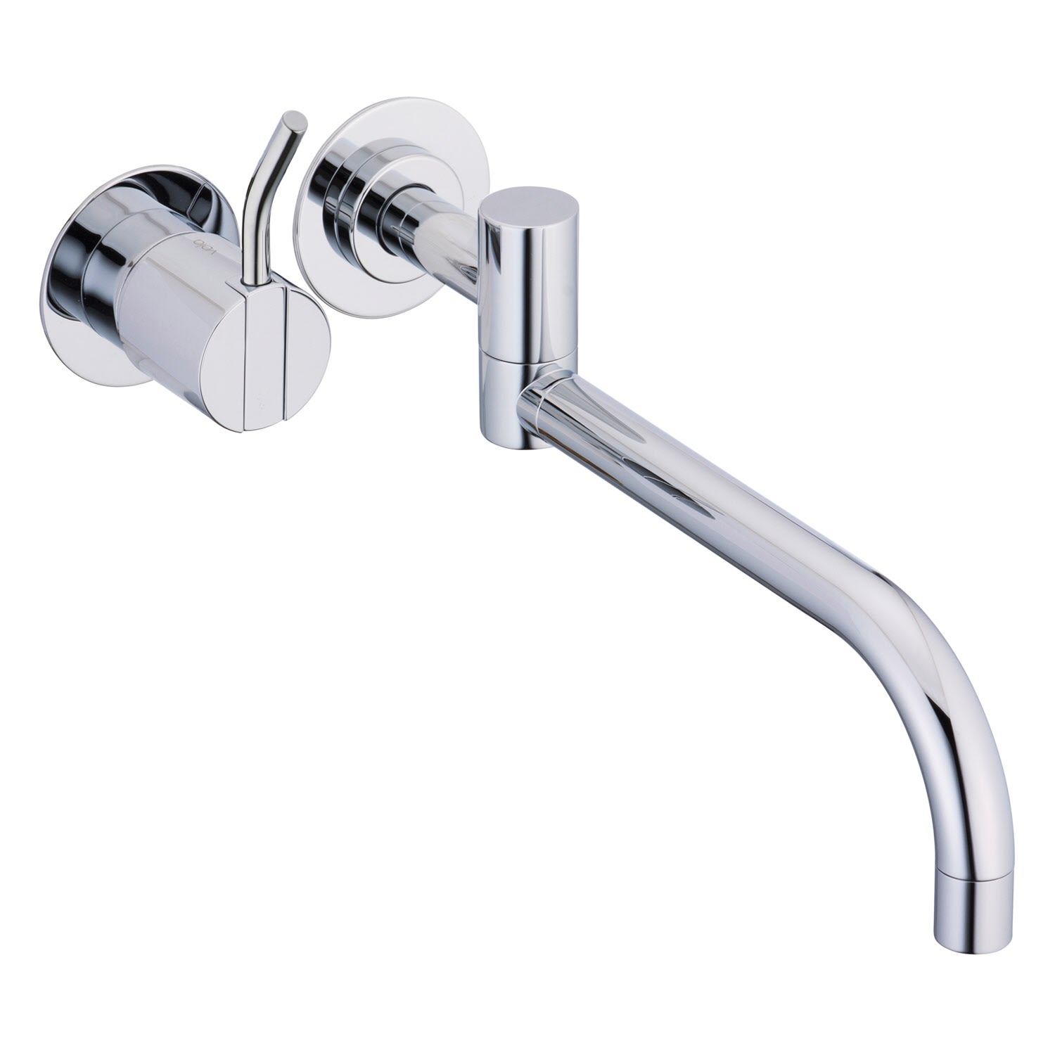 Vola Wand-Wasch- und Spültisch-Eingriffmischer UP mit Doppelschwenkauslauf rechts, Ausladung 25 cm