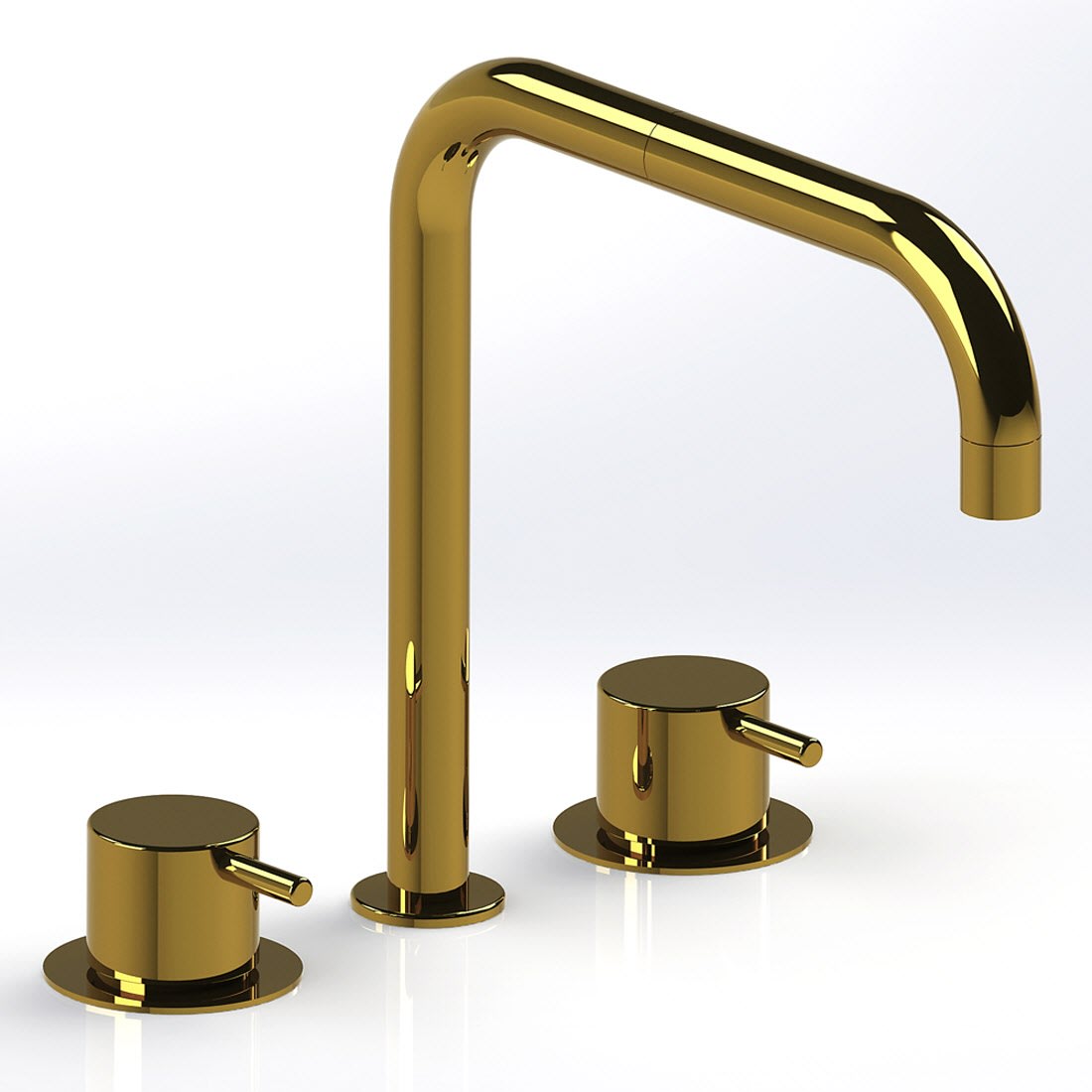 Vola Waschtisch-Dreiloch-Zweigriffmischer mit Doppelschwenkauslauf, Ausladung 20 cm