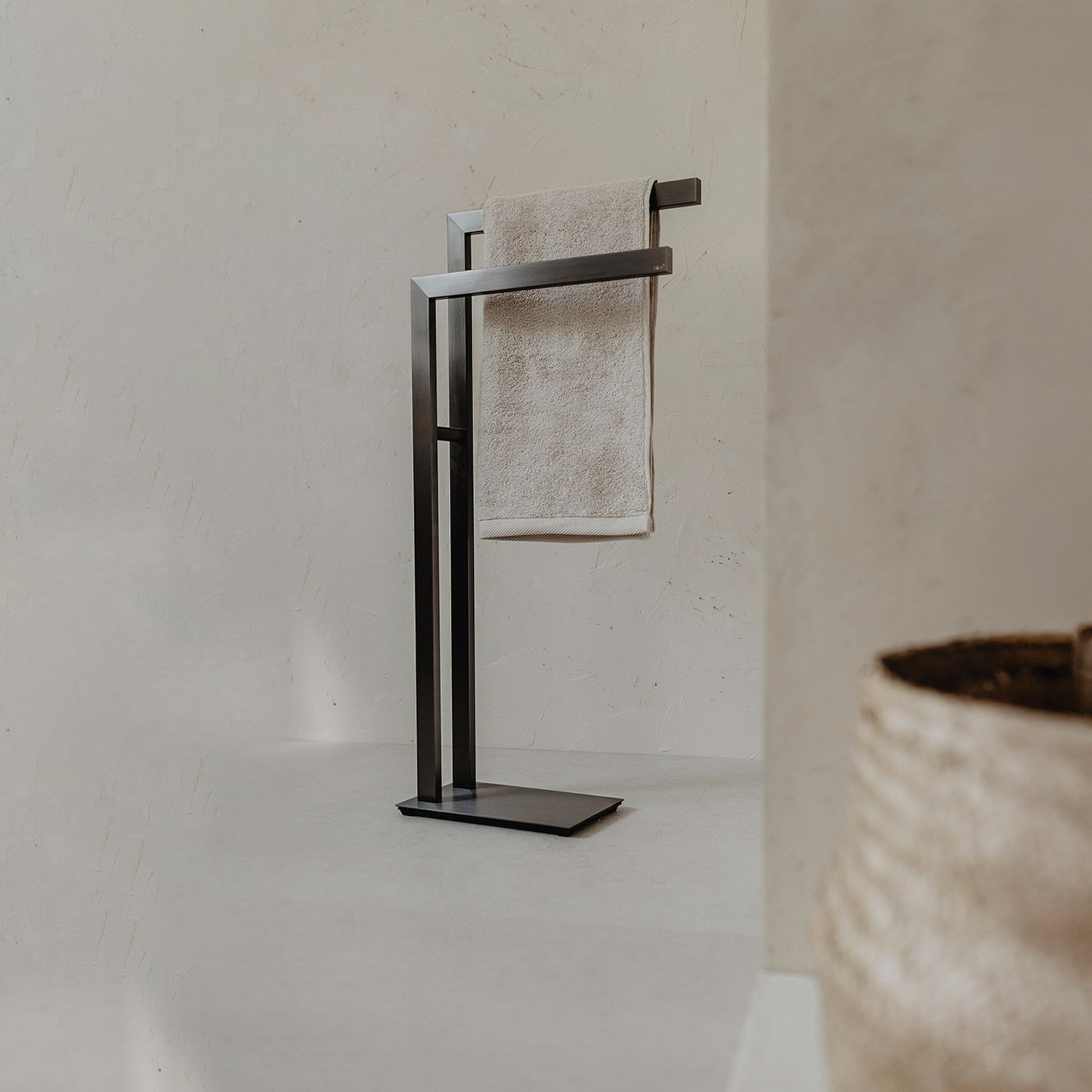 Ein Blickfang in jedem Bad ist der freistehende Handtuchständer. Der edle Helfer hält Ihre Handtücher stets dort bereit, wo sie benötigt werden. Die dekorative Anordnung der Handtuchstangen auf verschiedenen Höhen vereinfacht die Handhabung und lässt die nassen Handtücher zudem besser trocknen. Die schwere Bodenplatte sorgt für einen sicheren Stand, Gummipads unter den Füßen schützen empfindliche Böden.