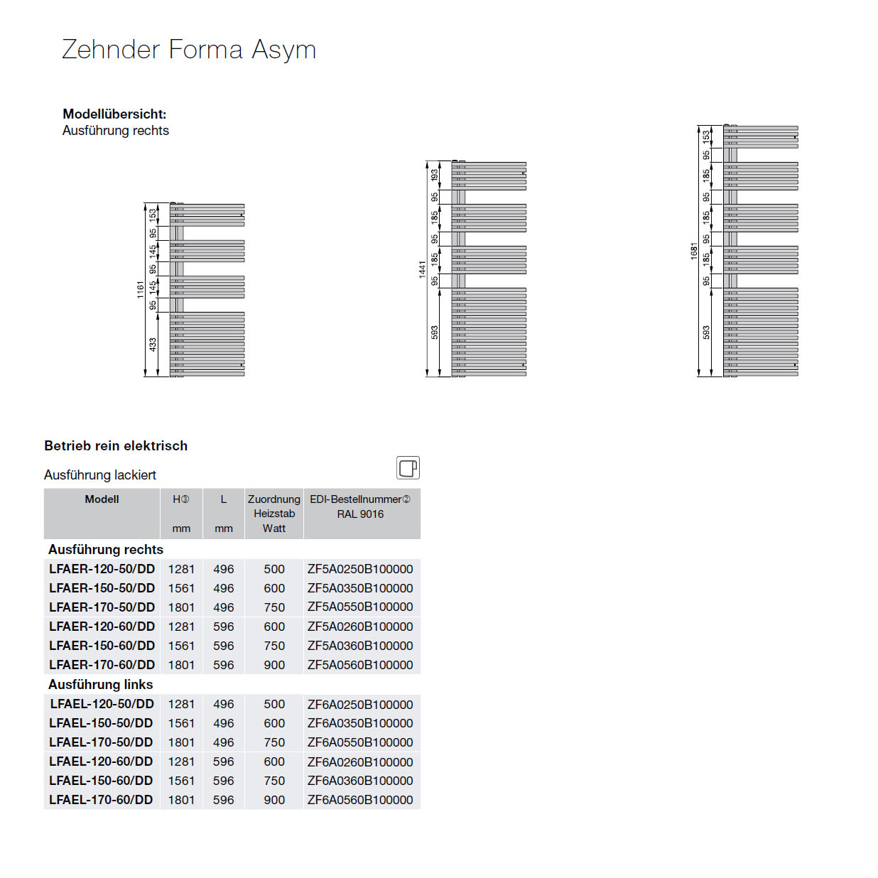 Zehnder Forma Asym LFAER-120-50/GD Handtuchwärmer 49,6 x 128,1 cm rechts mit RACY-C