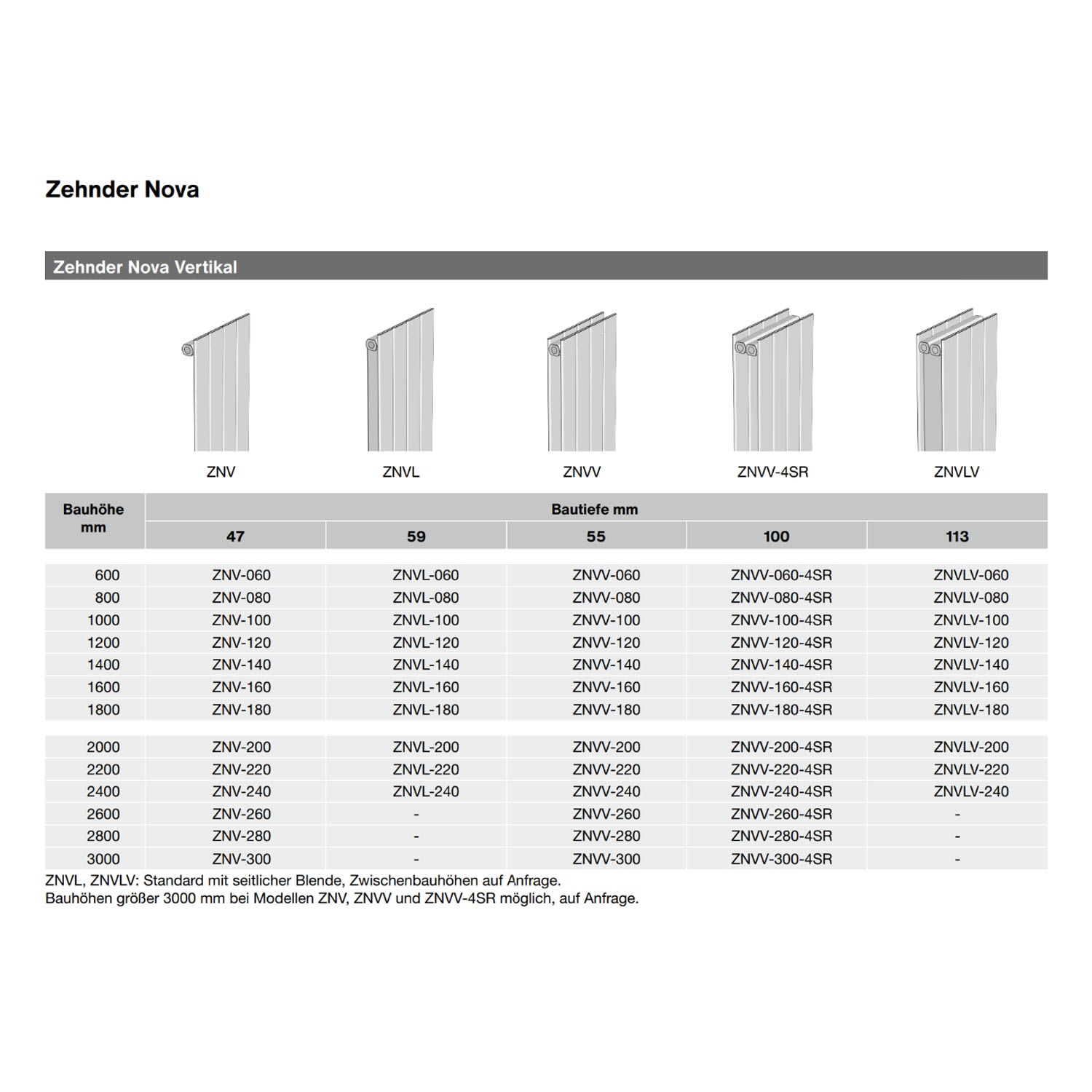 Zehnder Nova ZNVLV-200 Heizkörper vertikal 78,9 x 200 x 11,3 cm, Anschlussart 3470