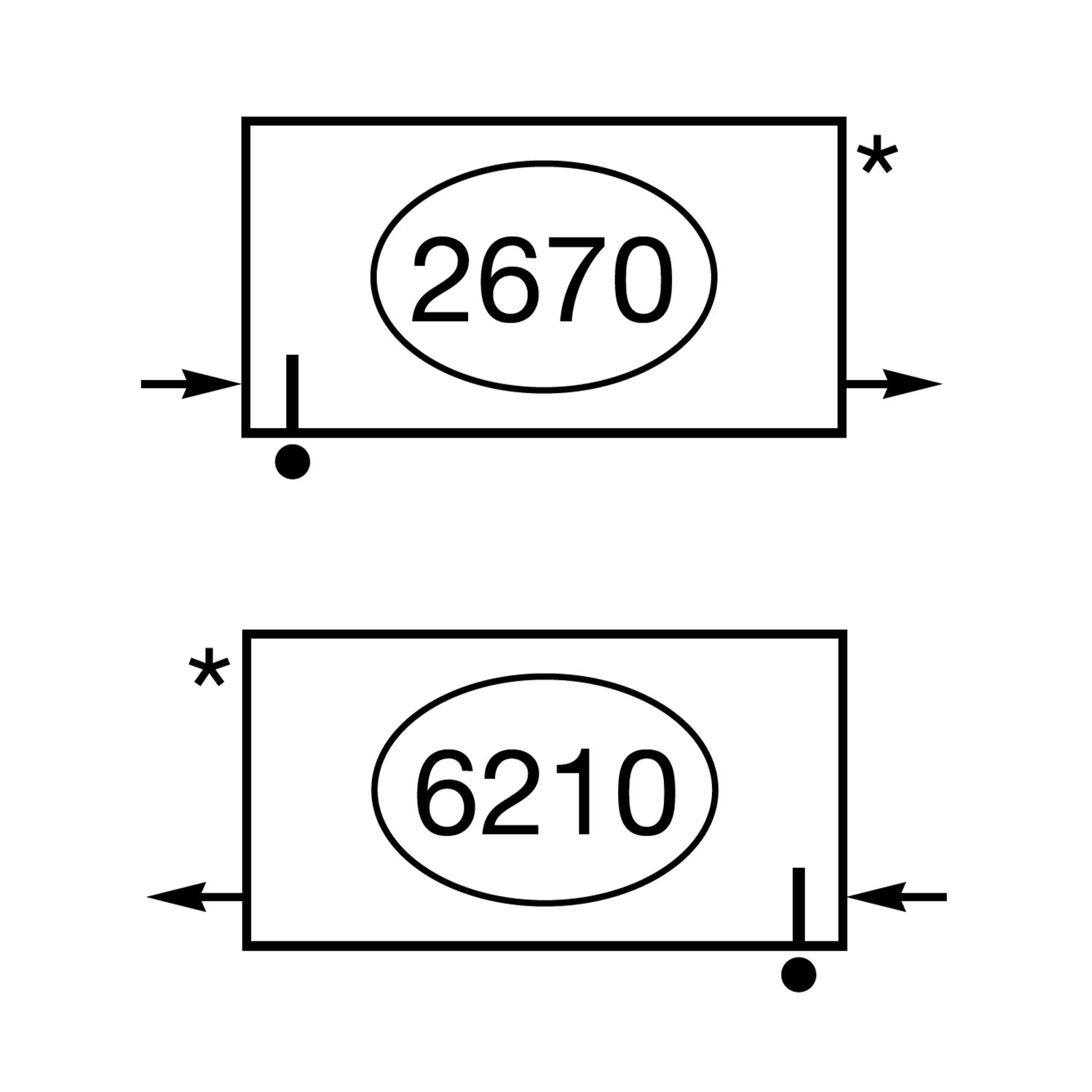 - mit Anschlussart 2670 (VL unten links, RL unten rechts)