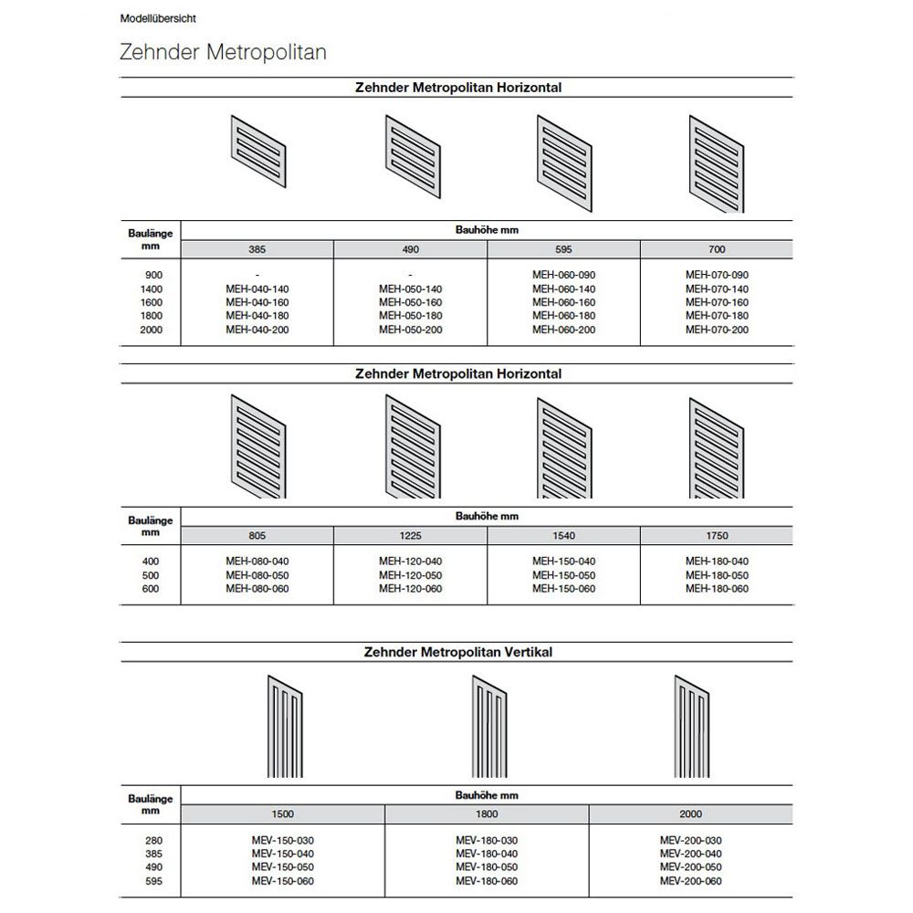 Zehnder Metropolitan MEH-050 Heizkörper 140 x 49 x 3,9 cm Anschluss S012